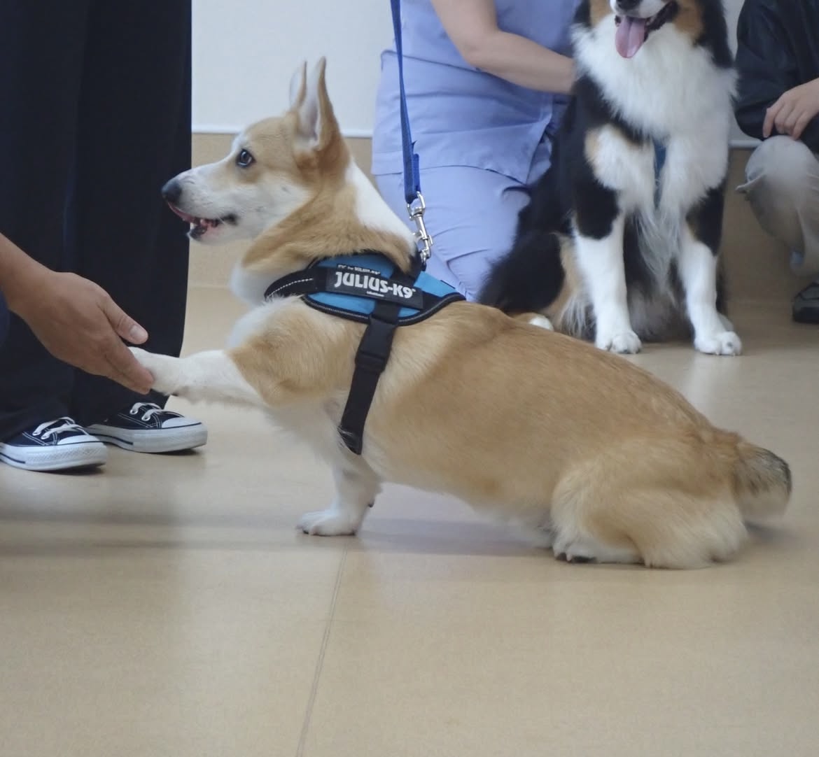 テストは「お座り」「お手」「おかわり」「まわる」の連続技を披露してくれました👏