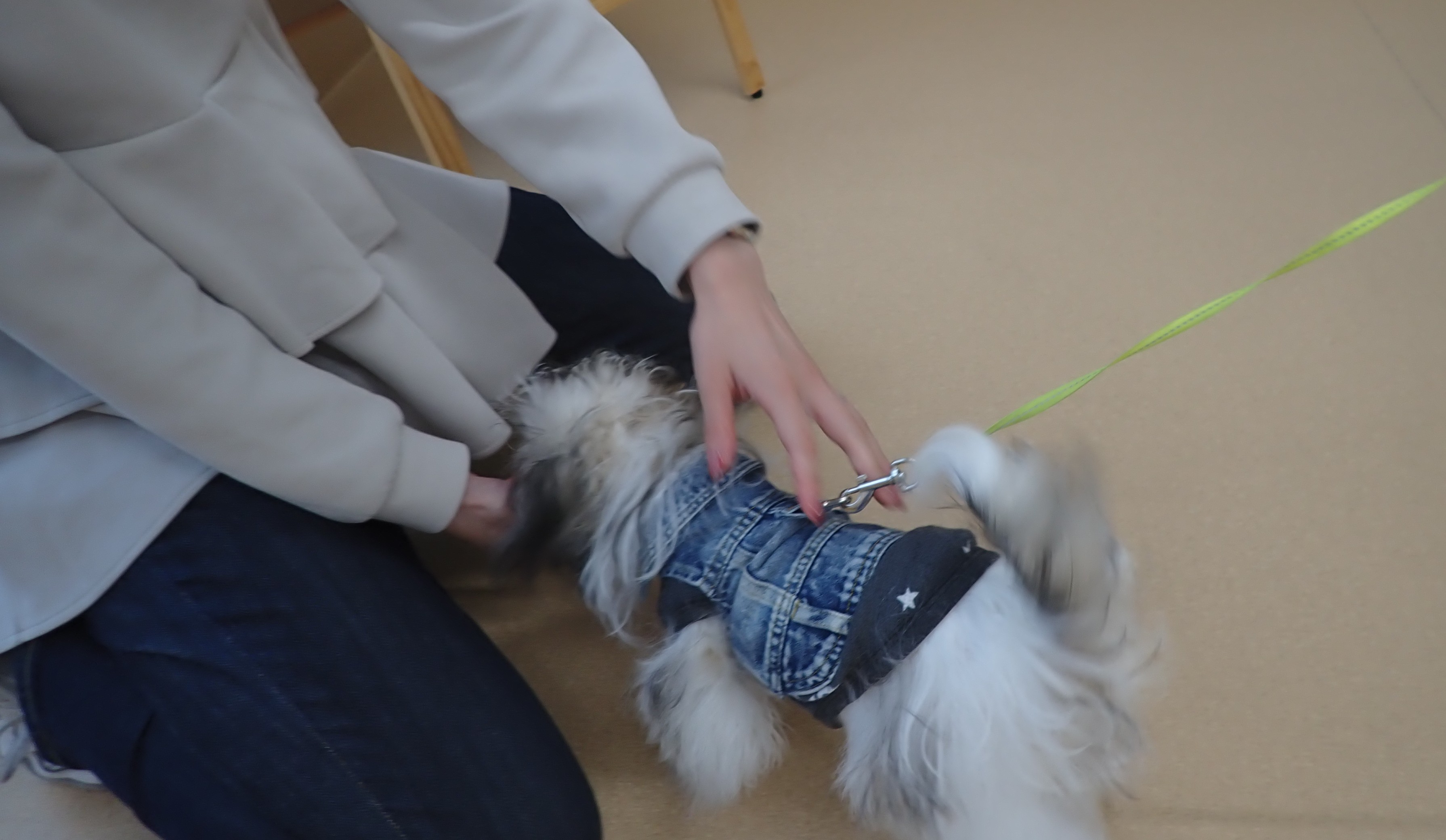できるようになったら、距離をとってそばに来てくれたら軽くリードを握って、ご褒美です☆
