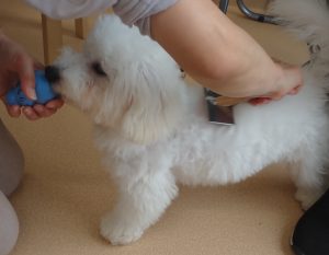 今回のクラスは「落ち着かせる」「体を触る」「お手入れ」の練習を行いました!