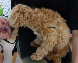 最初に歯ブラシを持った状態でおやつをあげていきます♪