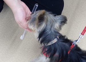最初は手のひらに歯ブラシを乗せた状態でおやつを食べれるか確認です♪
