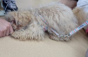 写真は「ふせ」の練習を頑張っている「もなかちゃん」の様子です!