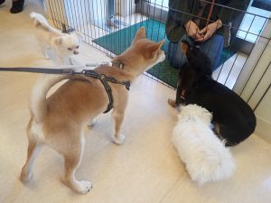 診察室練習を待っている間に『社会化練習』をしてみました🐶