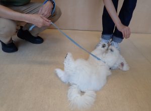 次に前回行ったことの復習として「おすわり」「ふせ」「バーン」を披露していただきました!!