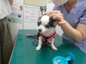 モネちゃんの今日の診察台練習は『耳鏡練習』です☆