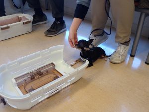 少しずつ慣らしていきましょう! 分解できるキャリーなら分解して蓋にならしてみたり、扉は閉めずに中に入る練習をしてみたり