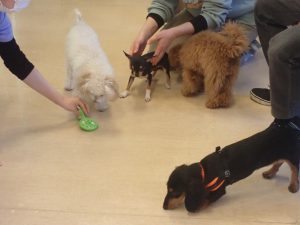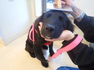 おやつを使いながら体中を触る練習とブラッシング練習まで行いました!
