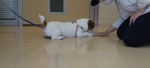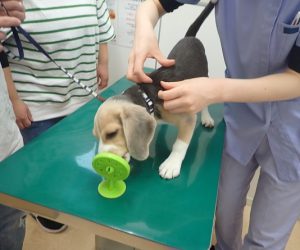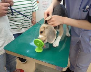 まず、はじめはこむぎちゃんの診察台練習です!