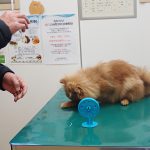 今日の若ちゃんは診察台でも合図に従えるか行っていきました!