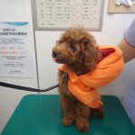 洋服を着せる練習をしていきました。 嫌がることなくおりこうさんです。