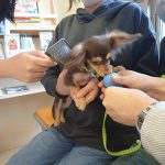 クラスではブラッシング・足ふき練習をしていきました まろんちゃんはお耳が苦手とのことでしたが、