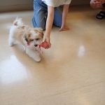 最後はスタッフの犬とご挨拶♪ 上手にできるかな?