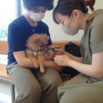 チワワとダックスのmixの男の子です🐶 今日は歯ブラシを使って歯みがき練習を行いました