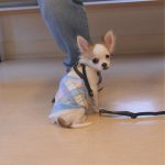 「見返り美男子・仔夏ちゃん」・・・実は、マナーベルト練習ですが・・・SSSのマナーベルトに体をすっぽり 包まれています(笑) 怖がりさん・・・でも、一歩ずつ成長を見せてくれる仔夏ちゃんでした。
