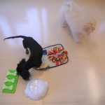 風羽ちゃん、台の上で怖がることなく、ご褒美に夢中です。 しかし・・・ 落ち着かせる練習は、課題です!!宿題ね!!