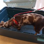クレート練習では、初めてのクレートにも全く動じることなく、最後には自らクレートに入って行ってくれました。