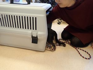 今回は『ちょうだい』『クレートに慣れる』練習を行いました。