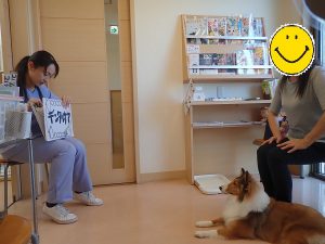 まずは前回すこし嫌がってしまった『落ち着かせるポーズ』を行ってもらいました。