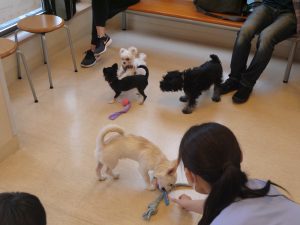 現在、クラスに参加している子との体格・相性をみて卒業したわんちゃんに声をお掛けしています。