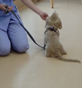 「誘導」は私たちの手にわんちゃんがついてきてくれることをいいます!