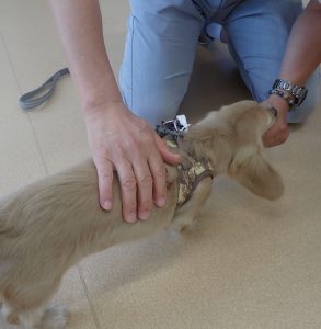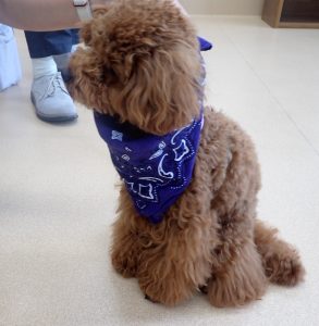 こちらはご褒美で誘導して自分からバンダナに首を通してもらうことが目的になります!