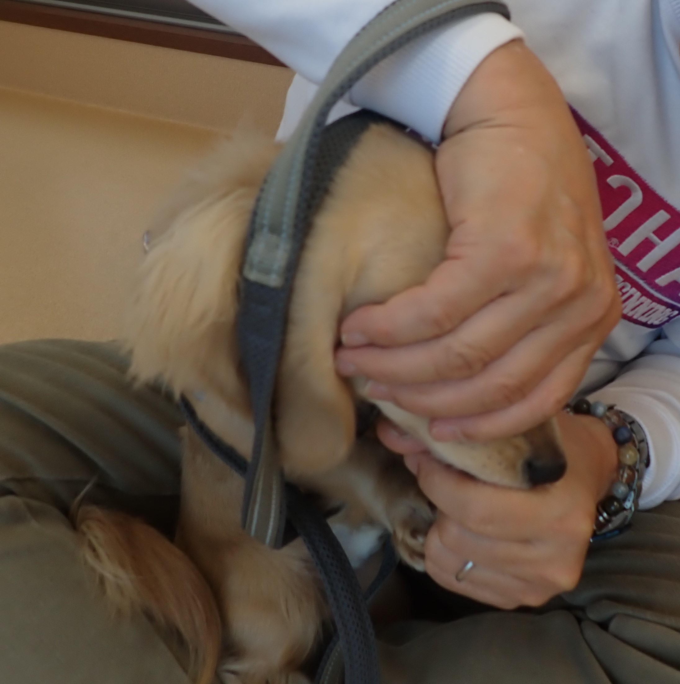 ハンドコング(ご褒美を握った手を舐めてもらう)を使いながら、ココちゃん頑張っていますね(^^)/