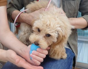 今回のクラスは「体を触る」「お手入れ」「落ち着かせる」練習を行いました!!