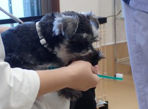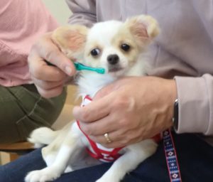 次にご褒美を上手にあげながら歯ブラシを当てるだけ行います!!