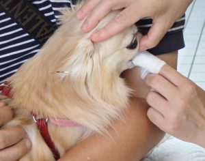 ご褒美を見せる→「待て」→磨く→おりこう、でご褒美をあげましょう