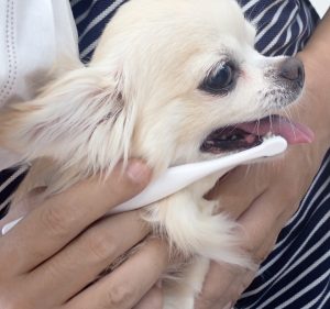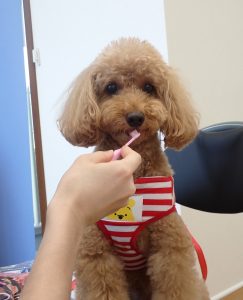 歯ブラシとご褒美を一緒にあげることで歯ブラシに良いイメージを持ってもらいます