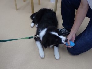 まずは「ちょうだい」の練習です。コングやガムを使って、はなしてくれたら「おりこう」と褒めてご褒美です(^^)/