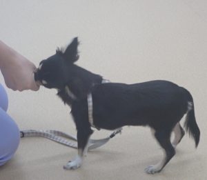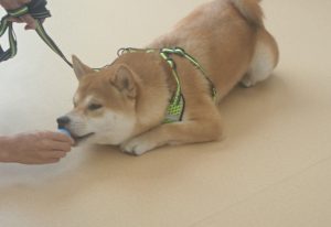 「丸ちゃん」は「おすわり」と「ふせ」に挑戦です!