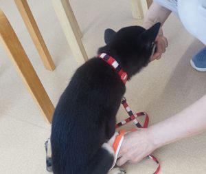 今回のクラスは「落ち着かせる」「体を触る」「お手入れ」の練習を行いました♪