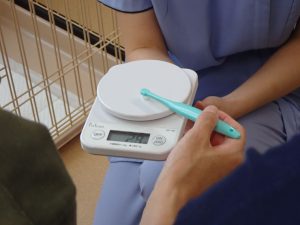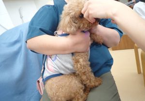 外来中に獣医師による歯科検診を行い、どこの歯に汚れがあるか、歯周病のレベルはどのくらいかチェック!
