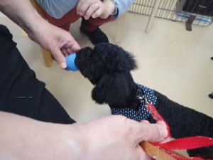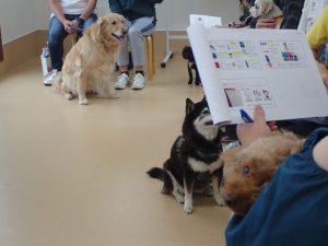 ②【わんちゃんにとってなぜ歯みがきが必要なのか、歯周病とは何か、デンタルグッズは何があるかのご説明/ブラックライト体験/口周りを触る練習】