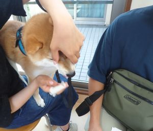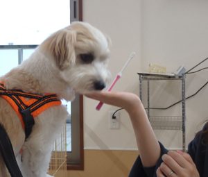歯ブラシとご褒美を一緒にあげることで歯ブラシに良いイメージを持ってもらいます