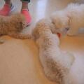 今日はモフモフdayです・・・ 左から ムアちゃん(トイプー)先輩ワンコの、みみちゃん(ダップー) チルちゃん(ビションフリーゼ) 参加者の方から「色違い三姉妹」と命名されました♪ みみちゃんのお気に入りおもちゃにみんな興味津々・・・の図です。 ムアちゃん...