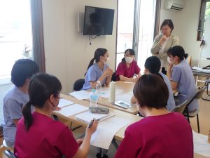 こんにちは☀ 暑さが和らぎ過ごしやすい一日になりましたね! 今日は、当院で頑張ってくれている新入社員の取り組みについてお伝えいたします。 当院では毎月新入社員研修の一環として”接遇研修”を行っています。 来院の動物さん達は基より、その動物さんの飼い主さんにも「気持ちの良い対応」と思っていただけるよう、言葉遣いから所作等を接遇講師から学び勉強しております。 そんな研修風景です
