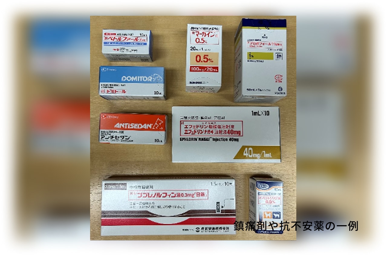 痛みや不安によるストレスは麻酔や手術後の問題を引き起こす大きな原因となります。また、手術後の痛みをできるだけ少なくすることが、傷や身体全体の回復を早めると考えられています。当院では、多くの種類の抗不安薬や鎮痛剤を組み合わせる事でより効果的な痛みの管理(マルチモーダル鎮痛)を手術の準備段階から行っています。