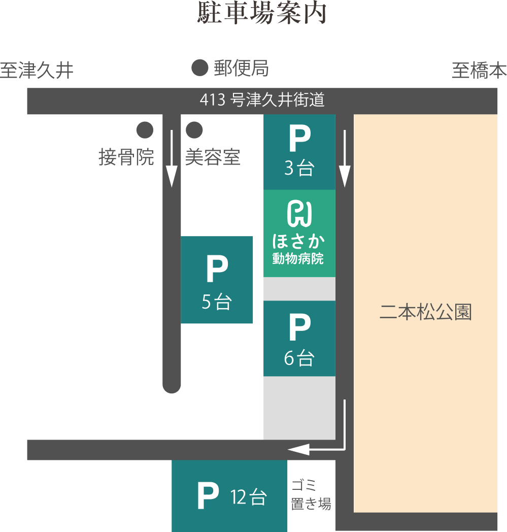 待合室や駐車場や病院周囲の歩道でうんちやおしっこをしてしまった場合は、スタッフへお気軽にお申し付けください。