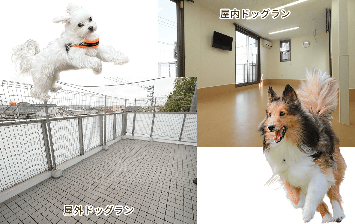 お散歩タイムの時に、外に行きたくないわんちゃんやノーリードで遊びを希望するわんちゃんは、ドッグランを利用できます。